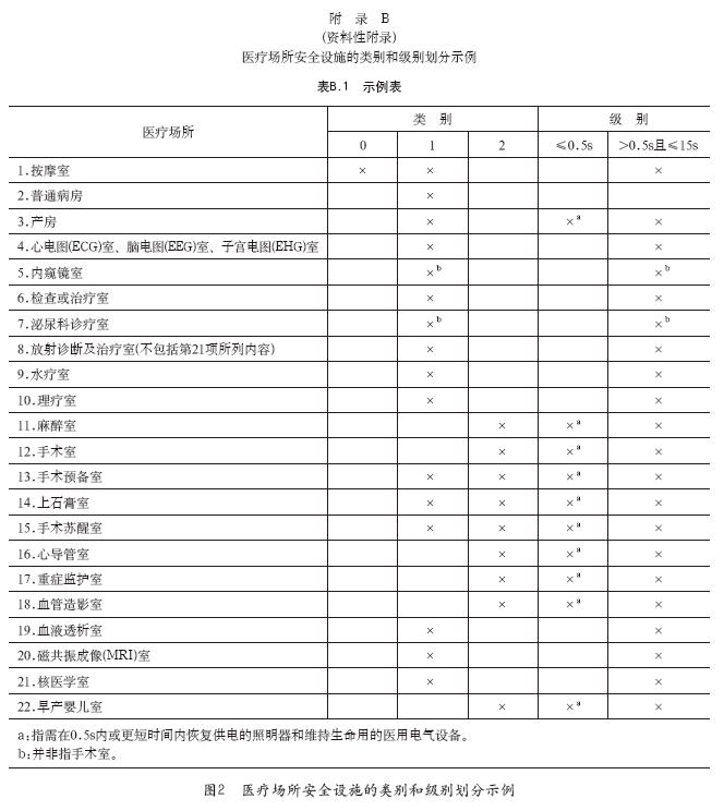 1.2 医疗场所安全设施的类别和级别划分示例