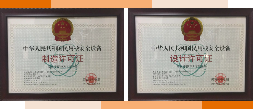 “民用核安全设备设计许可证”及“民用核安全设备制造许可证”